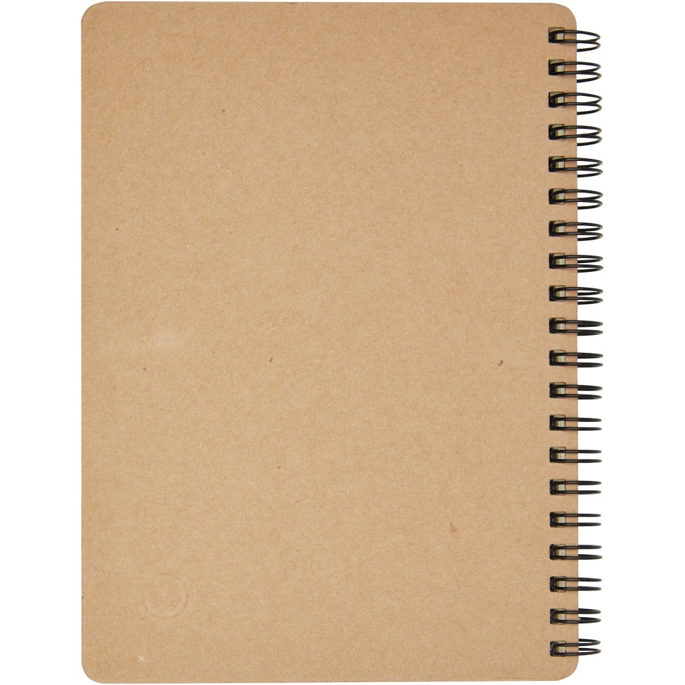 Újrahasznosított papírfedelű jegyzetfüzet 60 db újrahasznosított papírból készült A6-os méretű vonalas lappal, hozzáillő tollal. A toll fekete tollbetétel érkezik és külön van csomagolva. Emblémázás: Szitanyomás, Tamponnyomás