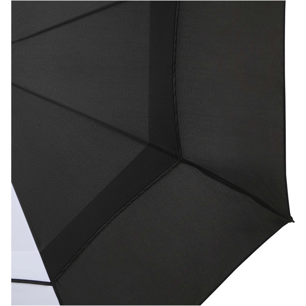 A Jeff szélálló golfesernyő tágas, 55 hüvelykes poliészter ernyőrésszel rendelkezik, amely kényelmesen megvéd több személyt is az időjárástól. Erős üvegszálas szára és váza kiváló rugalmasságot biztosít, így jól ellenáll az erős szélnek. Praktikus műanyag fogantyúja automata nyitógombbal van ellátva, ami gyors és egyszerű használatot tesz lehetővé. Kontrasztos ernyőpaneljei remek lehetőséget kínálnak feltűnő, látványos emblémázásra, így ideális választás rendezvényekhez, promóciókhoz vagy mindennapi használatra. Emblémázás: Szitanyomás