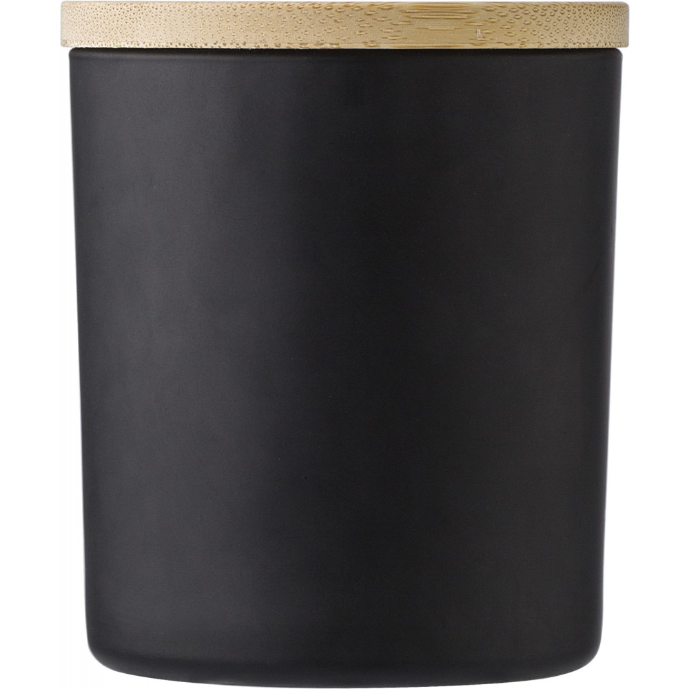 Üveggyertya növényi alapú viasszal és bambusz fedővel. A gyertya főleg növényi alapú viaszt (karnaubaviaszt) tartalmaz, égési ideje körülbelül 46 óra. Négy illat az üveg színétől függően: fahéj (piros), vanília (fehér), szantálfa (fekete) és jázmin (zöld). Egyenként, fehér papírpalástba csomagolva. Emblémázás: Gravírozás, UV nyomtatás