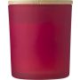 Üveggyertya növényi alapú viasszal és bambusz fedővel. A gyertya főleg növényi alapú viaszt (karnaubaviaszt) tartalmaz, égési ideje körülbelül 46 óra. Négy illat az üveg színétől függően: fahéj (piros), vanília (fehér), szantálfa (fekete) és jázmin (zöld). Egyenként, fehér papírpalástba csomagolva. Emblémázás: Gravírozás, UV nyomtatás