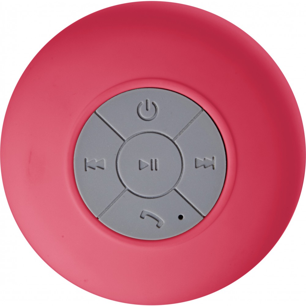 Vízálló Bluetooth hangszóró. Tökéletes megoldás bejövő hívások fogadására kéz használata nélkül vagy zenét hallgatni a zuhany alatt. Sima felületeken tapadókoronggal rögzíthető. Műanyag. Emblémázás: Tamponnyomás