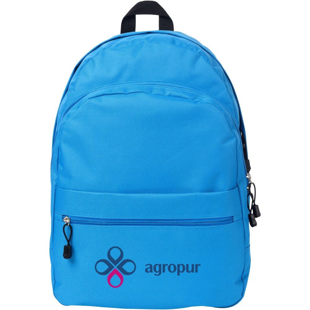 A kényelmes Trend hátizsák nyerő a promóciós hátizsákok között. A divatos kialakítású táska négy rekesszel rendelkezik: két cipzáras rekesszel, egy elülső cipzáras zsebbel és egy tépőzáras elülső zsebbel, így bőséges helyet kínál nagy és kis tárgyak tárolására egyaránt. A termék 600D poliészterből készült. Emblémázás: Hímzés, Szitanyomás