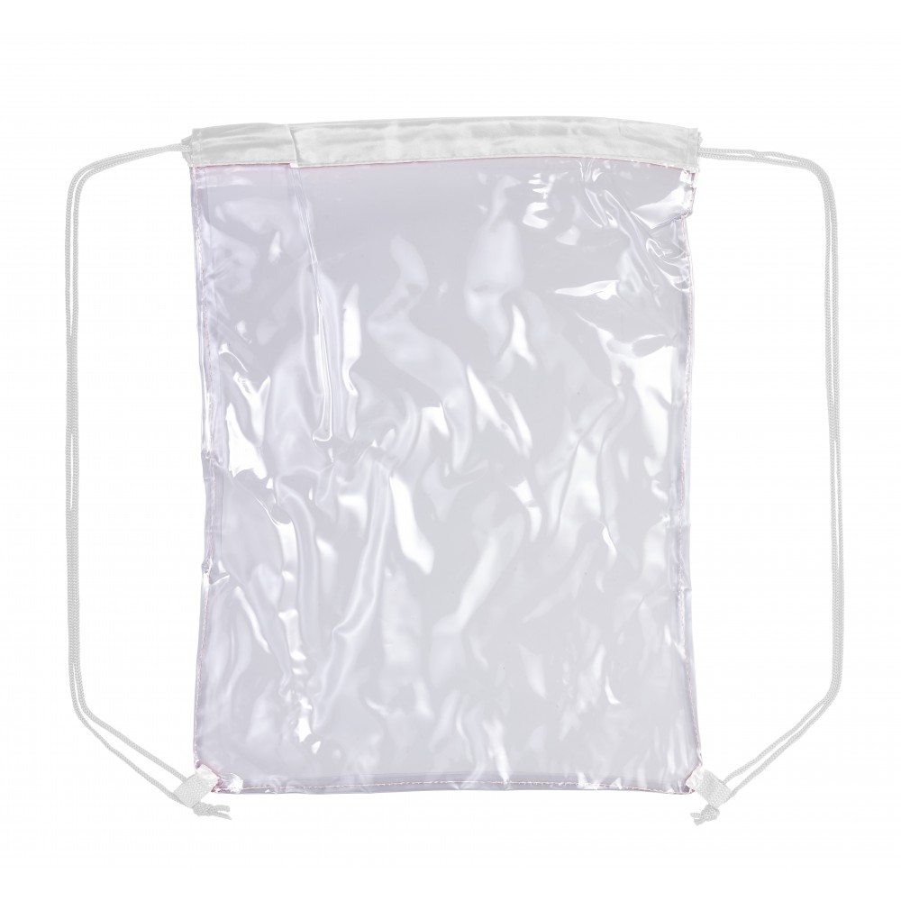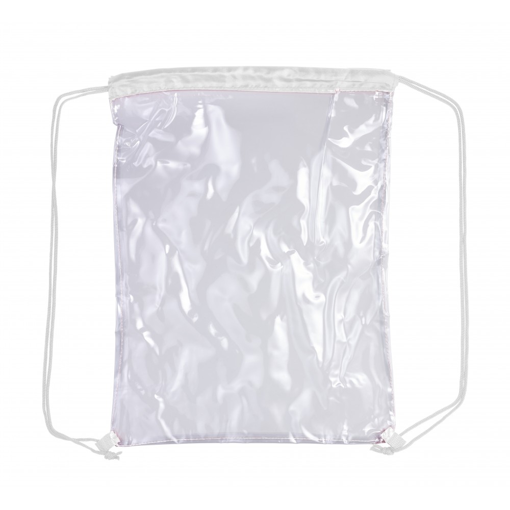 Átlátszó PVC tornazsák színes szegéllyel és összehúzó zsinórral. Emblémázás: Szitanyomás