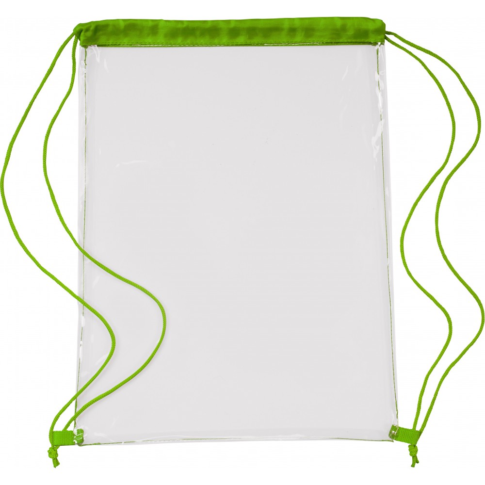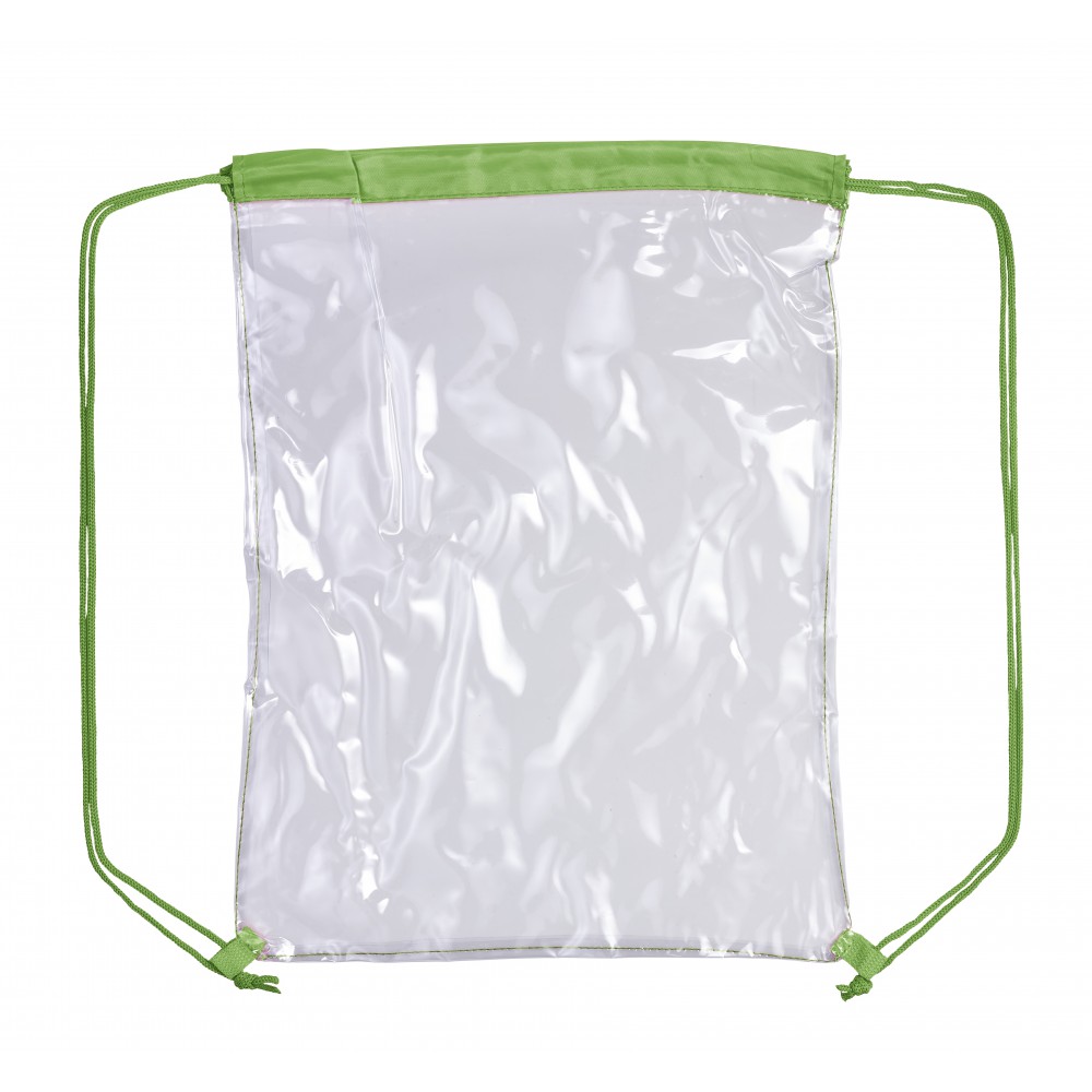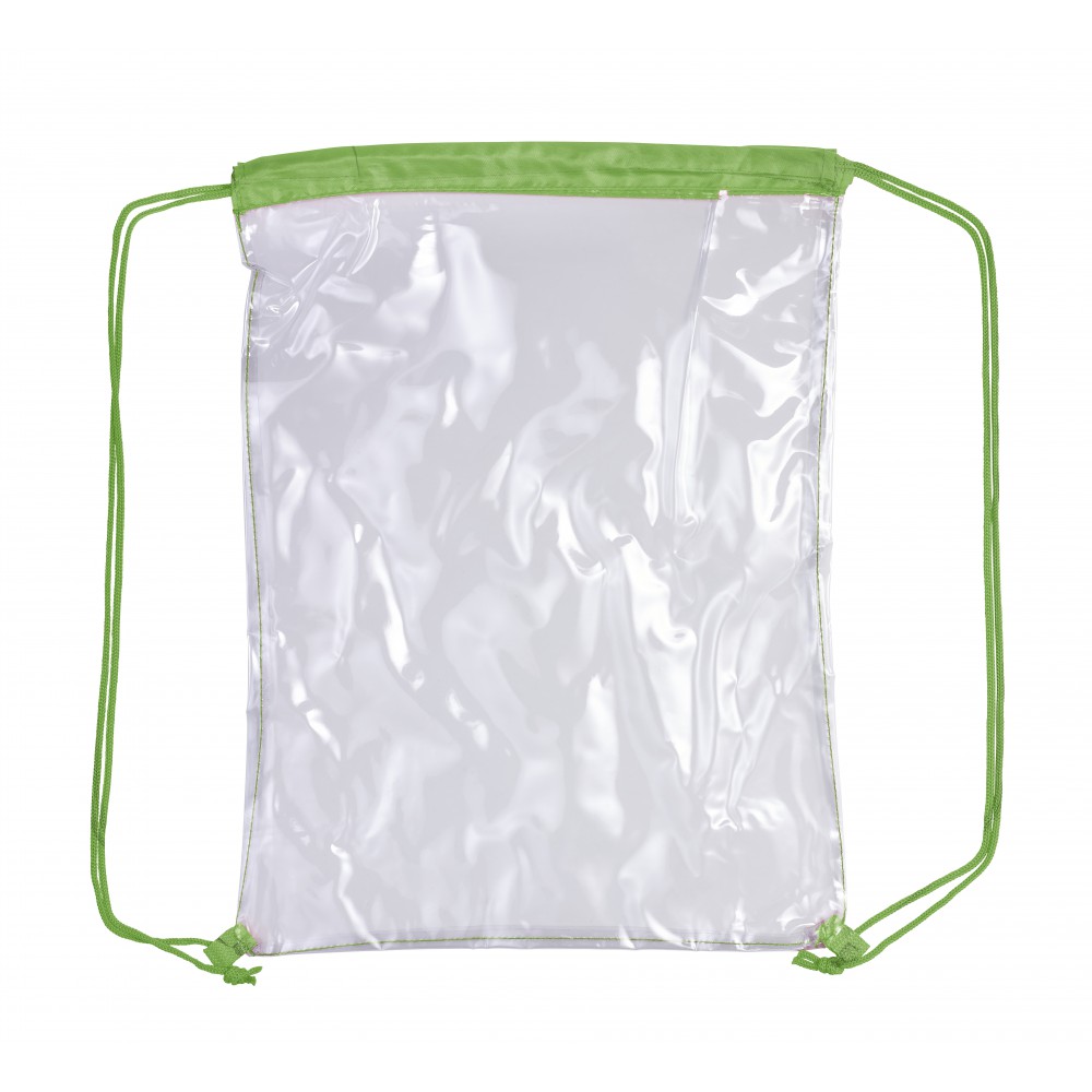 Átlátszó PVC tornazsák színes szegéllyel és összehúzó zsinórral. Emblémázás: Szitanyomás