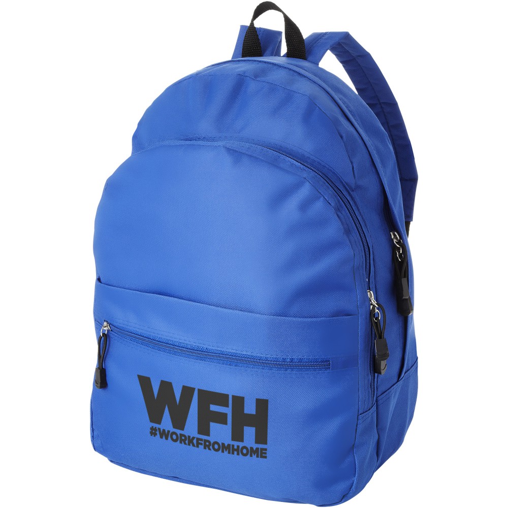A kényelmes Trend hátizsák nyerő a promóciós hátizsákok között. A divatos kialakítású táska négy rekesszel rendelkezik: két cipzáras rekesszel, egy elülső cipzáras zsebbel és egy tépőzáras elülső zsebbel, így bőséges helyet kínál nagy és kis tárgyak tárolására egyaránt. A termék 600D poliészterből készült. Emblémázás: Hímzés, Szitanyomás
