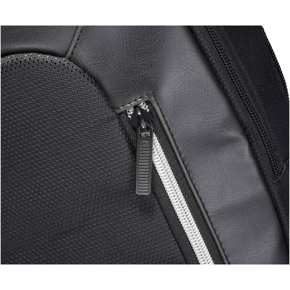 Elegáns, trendi, 15,6 -es laptop hátizsák nagy cipzáras, kulcstartós első zsebbel és rejtett RFID technológiájú blokkoló zsebbel a kártyák és okmányok adatlopás elleni védelme érdekében. A nagy, cipzáras fő tárolórész 15,6 -es laptop tárolására alkalmas, és elkölönített, párnázott résszel rendelkezik iPad vagy tablet számára. Az első, függőleges cipzár nyújt hozzáférést az első zsebhez. Két kiegészítő oldalzseb további tárolási lehetőséget biztosít, a párnázott, állítható vállpántok kényelmes viseletet nyújtanak, a hordozófül és a gurulós bőröndre húzható zseb lehetővé teszi a könnyű hordozást. Emblémázás: Szitanyomás