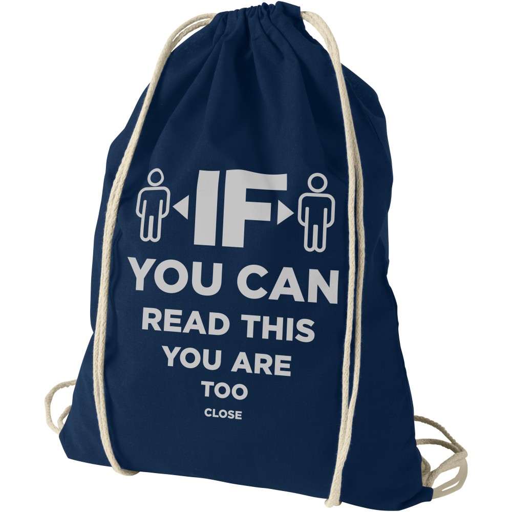 Húzózsinórral zárható nyitott fő rekesz. 100 g/m2 pamut. Emblémázás: Szitanyomás