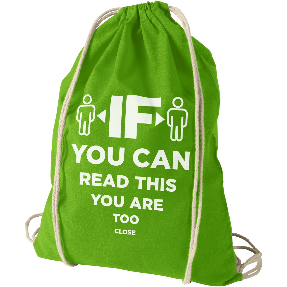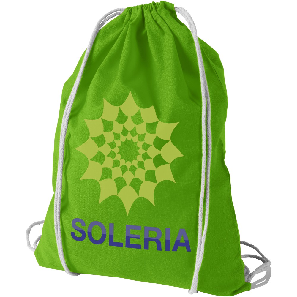 Húzózsinórral zárható nyitott fő rekesz. 100 g/m2 pamut. Emblémázás: Szitanyomás