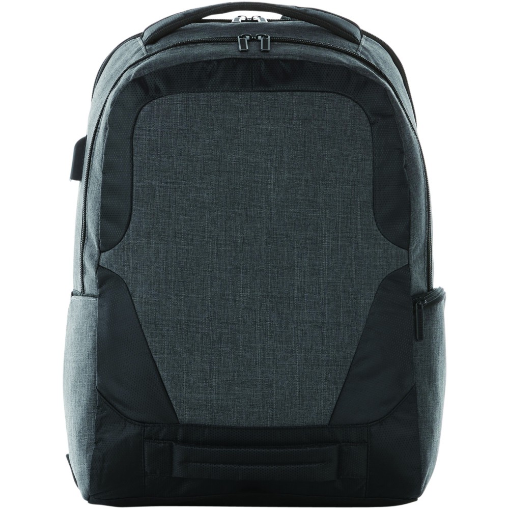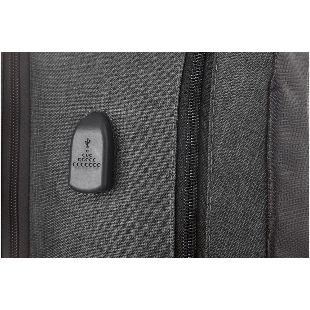 Elegáns 17 -os laptophátizsák USB csatlakozóval és kábellel, kiegészítő cipzáras zsebekkel, fogantyúkkal és párnázott vállpánttal. Emblémázás: Hímzés, Szitanyomás