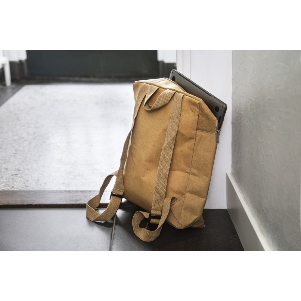 Laminált papír hátizsák cipzáras főrésszel, állítható vállpántokkal. 300 g papír. Emblémázás: Szitanyomás