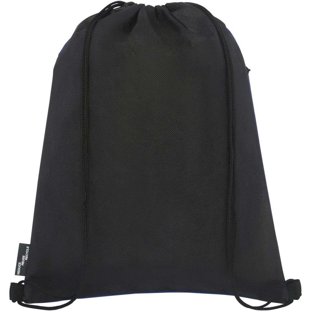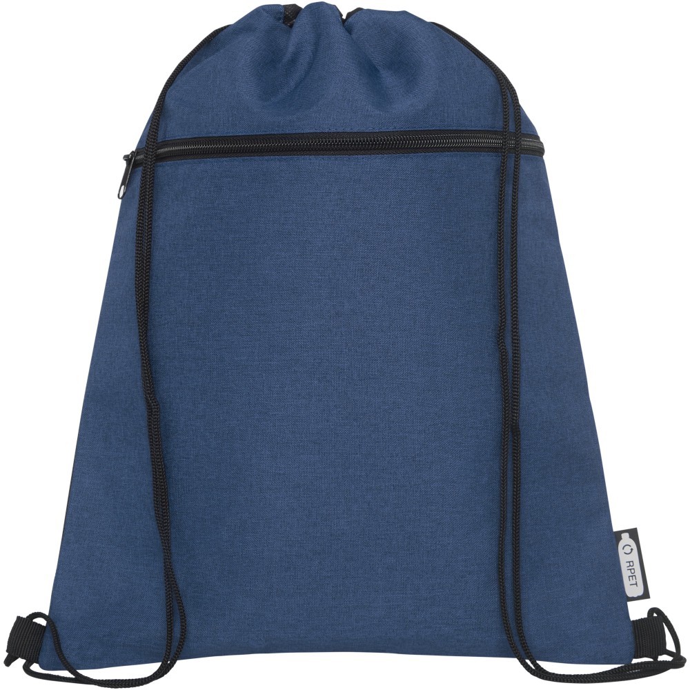 Tornazsák újrahasznosított RPET anyagból, fekete húzózsinórral, cipzáros zsebbel. Teherbírás 5 kg-ig. A termék színében kisebb eltérések lehetnek a festés, a szövés és a nyomtatás jellege miatt. 300D of újrahasznosított PET műanyag, újrahasznosított nemszőtt polipropilén, 80 g/m2. Emblémázás: Szitanyomás