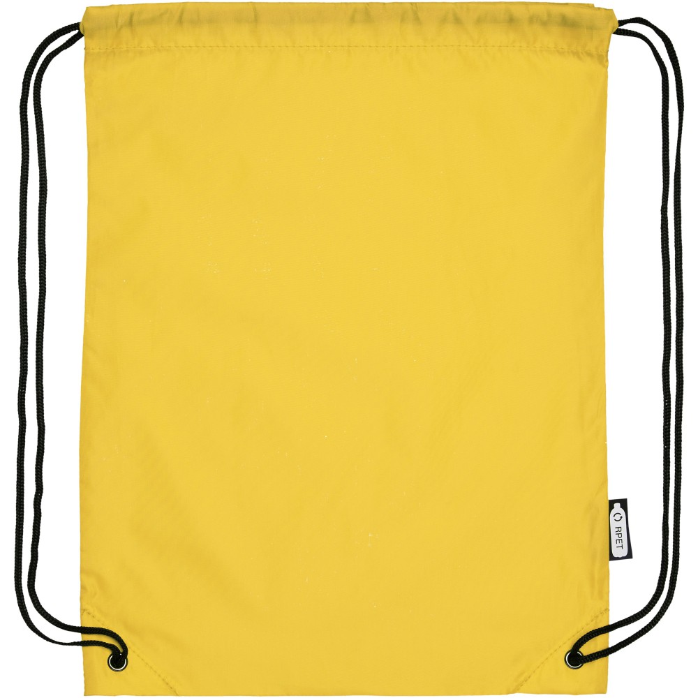Tornazsák 100% -ban újrahasznosított műanyagból. Nagy tárolórész, fekete húzózsinórral. Mérete: 33*44 cm. Űrtartalom: 5 liter, teherbírás: 5 kg-ig. Emblémázás: Szitanyomás