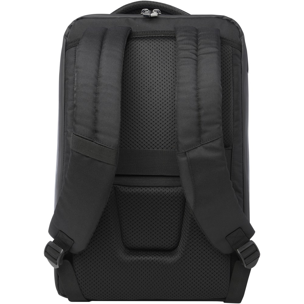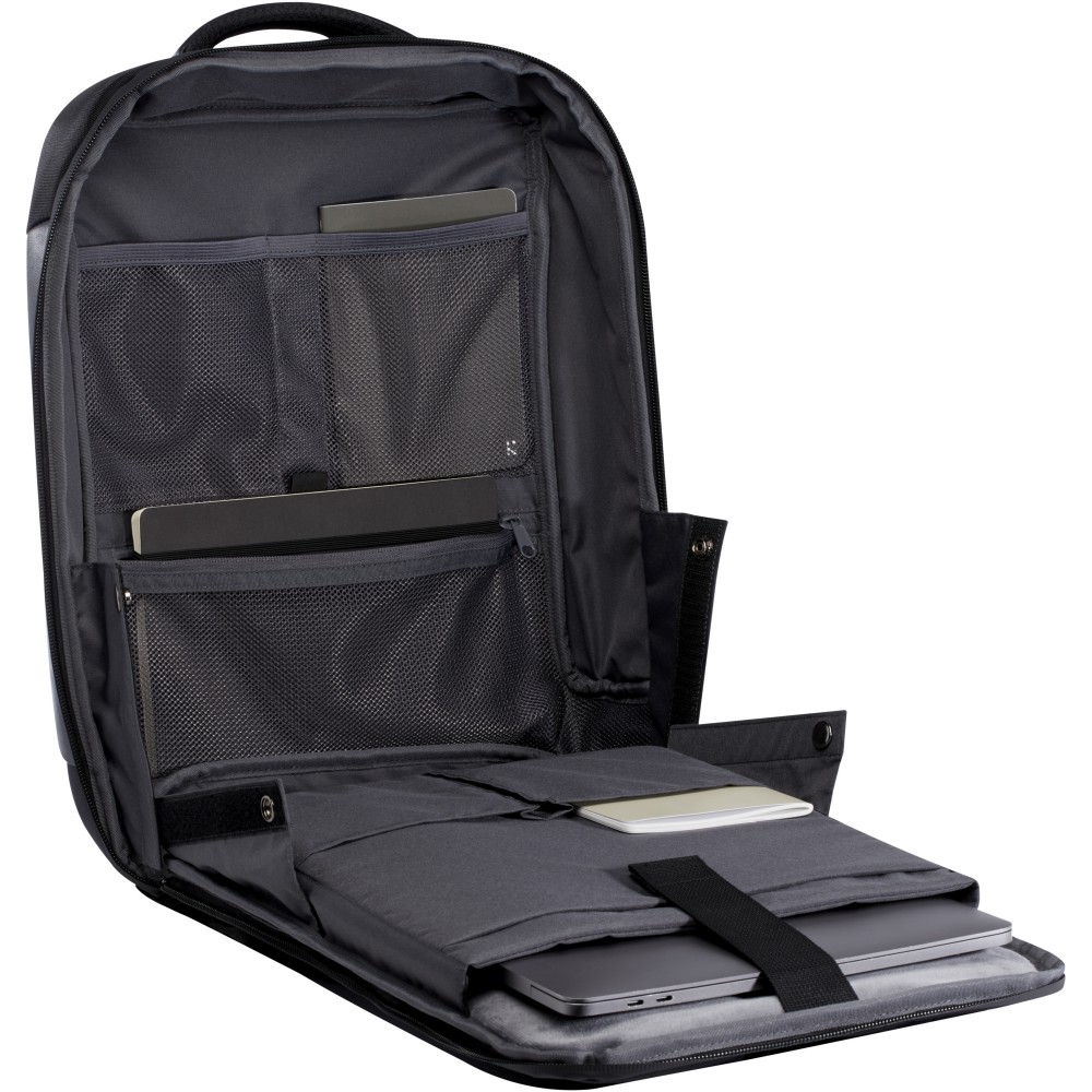 A karcsú, kompakt és masszív GRS tanúsítvánnyal rendelkező Expedition Pro laptop hátizsák tökéletes társ az úton lévő szakemberek számára. Vízlepergető 900D RPET anyagból készült, prémium PU elemekkel és RPET béléssel párosítva. Dedikált 15,6 -os laptoprekesszel, tablettartóval, több zsebbel, egy cipzáras elülső zsebbel és egy rejtett zsebbel közvetlenül a hátsó pánt alatt. Párnázott és állítható vállpántokkal, integrált kártyatartó zsebbel, napszemüvegtartóval, hálós hátlappal és párnázott fogantyúval készült, így biztosítva a maximális kényelmet és komfortot hordozás közben. Űrtartalma: 12 liter. PVC-mentes. Emblémázás: Szitanyomás