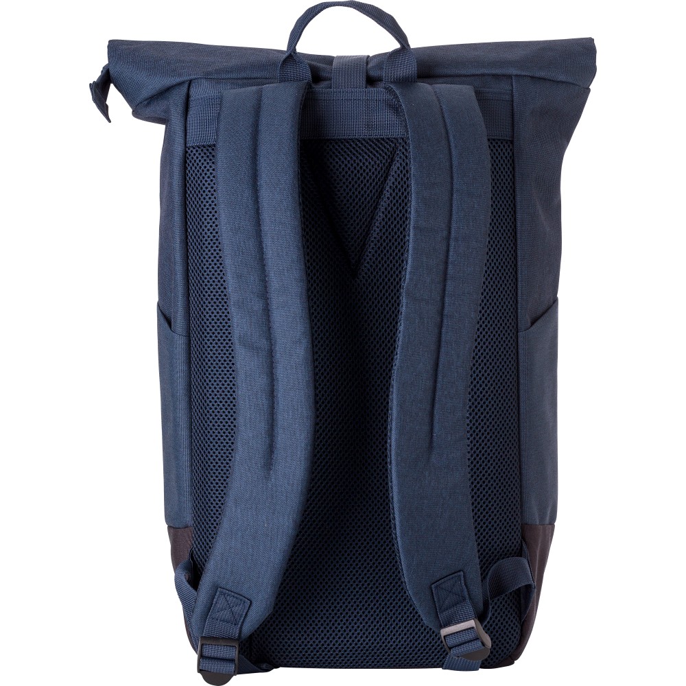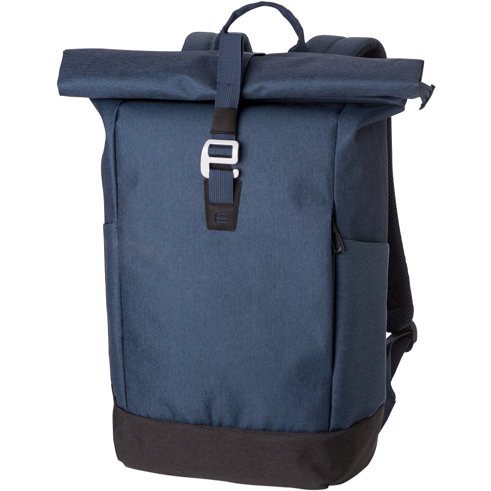 Poliészter (600D) rolltop hátizsák. Egy nagy cipzáras rekesz két csúszózsebbel és egy laptop rekesszel. Cipzáras rekesz elöl. Párnázott hátoldal és pántok. Fémhorog a záráshoz. Emblémázás: Szitanyomás