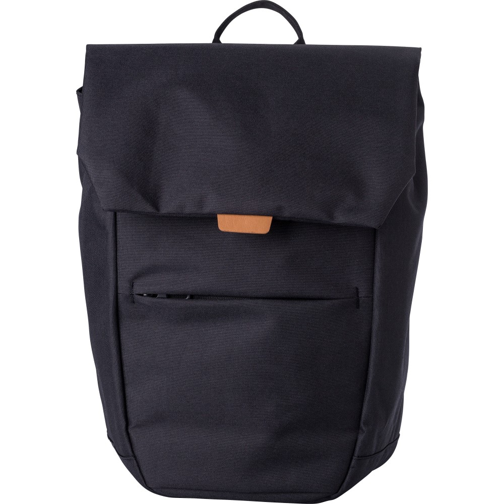 Kéttónusú poliészter (600D) hátizsák PU címkével a ráhajtón. Egy cipzáras zseb az elülső oldalon. Egy nagy rekesz a felső oldalon fém záródással. Laptoprekesz, amely egy 15 colos laptop számára alkalmas. A hátizsák megerősített hátlappal és állítható vállpántokkal rendelkezik. Emblémázás: Szitanyomás