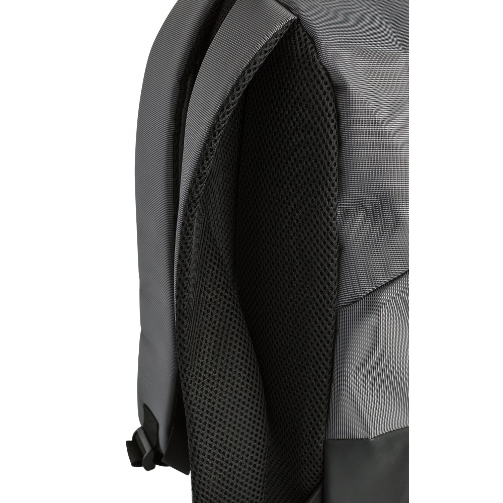 500D kéttónusú hátizsák. Állítható és szellőző bélés a háton és a vállpántokon. Nagy cipzáras rekesz 15 colos laptoptokkal. Emblémázás: Hímzés