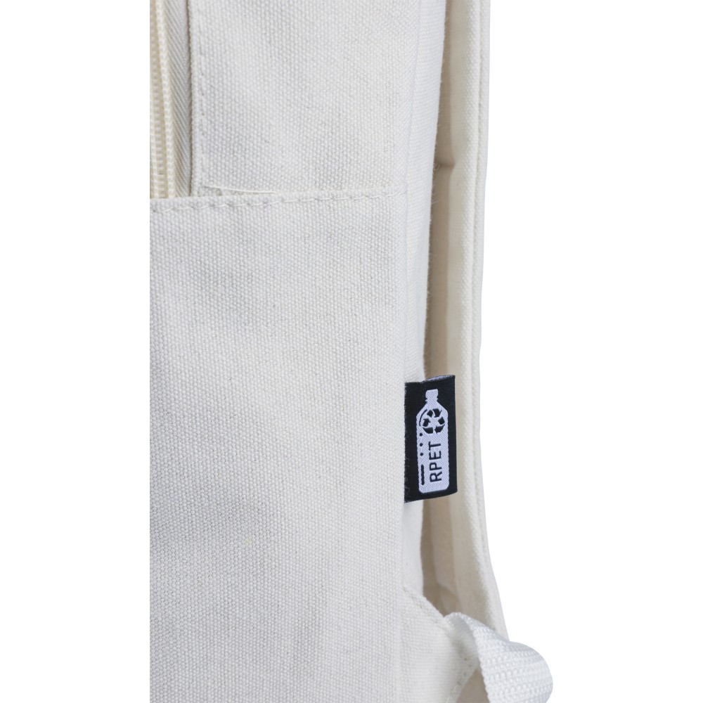 Hátizsák 330 g/m2 újahasznosított policotton anyagból, 210D poliészter béléssel. Egy nagy cipzáras rekesszel, párnázott 15"-es laptoptartó résszel, két belső és két külső rekesszel, oldalzsebbel és egy kicsi, cipzáras elsőzsebbel. Párnázott, állítható vállpánttal és hordozófüllel. Űrtartalom: 14 liter, teherbíró képesség: 13 kg. Címkét tartalmaz. Emblémázás: Hímzés, Szitanyomás