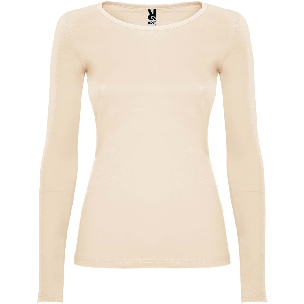 Hosszúujjú, oldalvarott, enyhén karcsúsított női póló 4 rétegű, kerek, keskeny nyakkal. Nincs ujj- és aljpasszé. Megerősített nyaki varrások. A férfi modell körkötött, a gyermek és női modell oldalvarrott. Szürke szín: 85% pamut és 15% viszkóz, 160 g/m2. Egyéb színek: 100% pamut, 160 g/m2. Emblémázás: Hímzés, Szitanyomás
