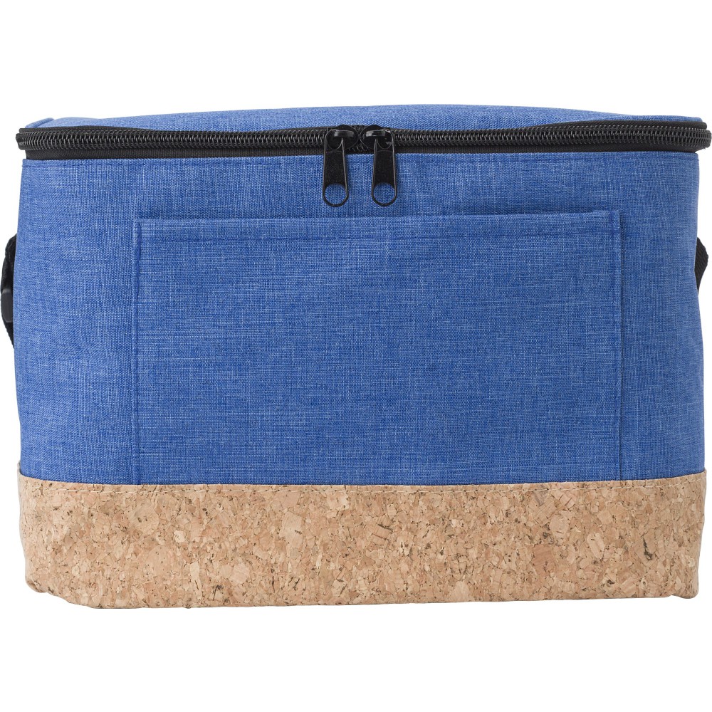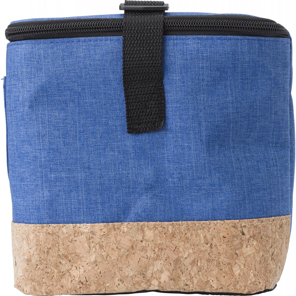Poliészter (600D) hűtőtáska cipzárral és parafa aljjal, hat darab 0,5 literes doboz számára. A belső anyag EVA. Emblémázás: Szitanyomás