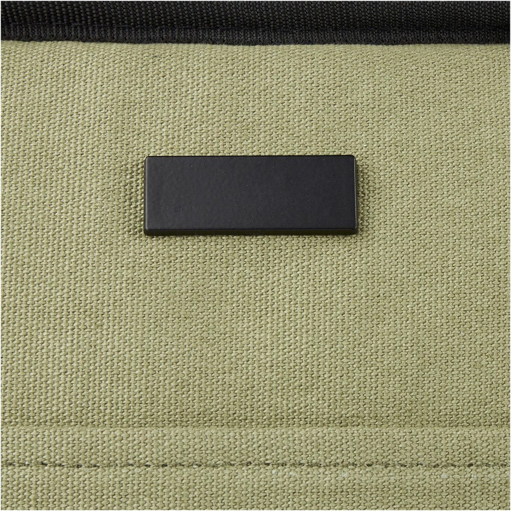 A rendkívül tartós és fenntartható anyagokból, GRS újrahasznosított vászonból és GRS RPET béléssel készült Joey hűtőtáska élelmiszer-minőségi előírásoknak megfelelő, PEVA béléssel ellátott, szigetelt fő rekesszel, nyitott elülső zsebbel és két megerősített hevederes fogóval rendelkezik a kényelmes szállítás érdekében. Emblémázás: Szitanyomás