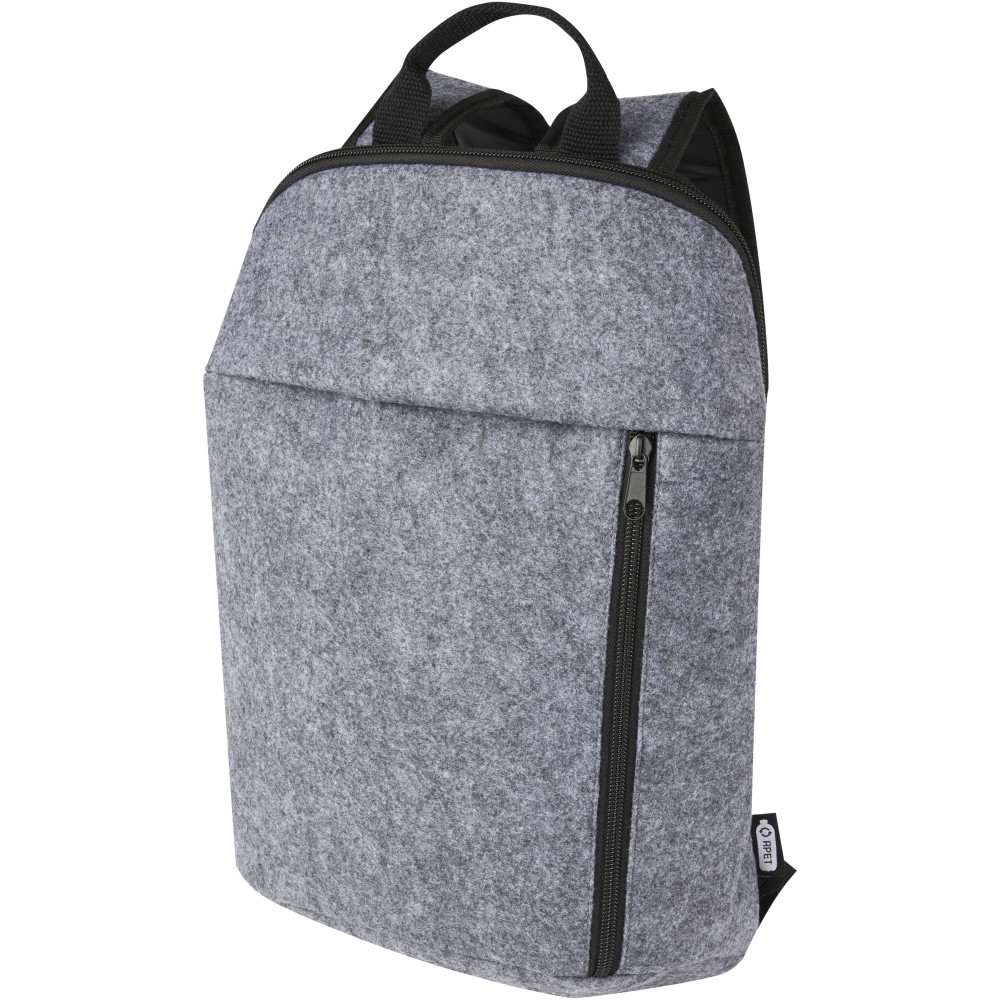 Praktikus hűtő hátizsák kiváló minőségű puha és tartós, GRS tanúsítvánnyal rendelkező újrahasznosított filcből. Élelmiszer-biztonságos, nagy sűrűségű PEVA hőszigeteléssel bélelt fő cipzáros rekesszel, amely órákon át hidegen tartja az italokat és a frissítőket. Elülső cipzáras zseb. Állítható vállpántok és pamut, szövött fogantyú. Könnyen tisztítható. Űrtartalom: 7 liter. GRS tanúsítvánnyal rendelkező újrahasznosított poliészter. Emblémázás: Hímzés