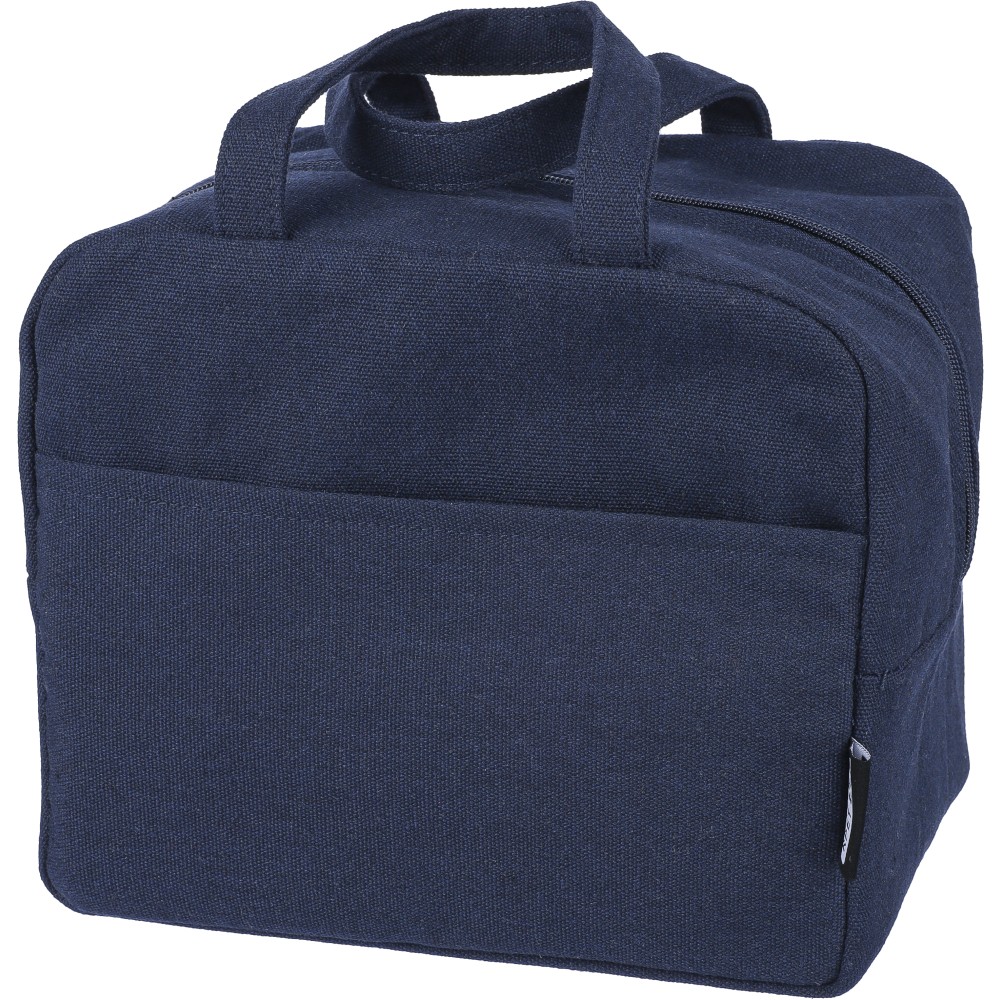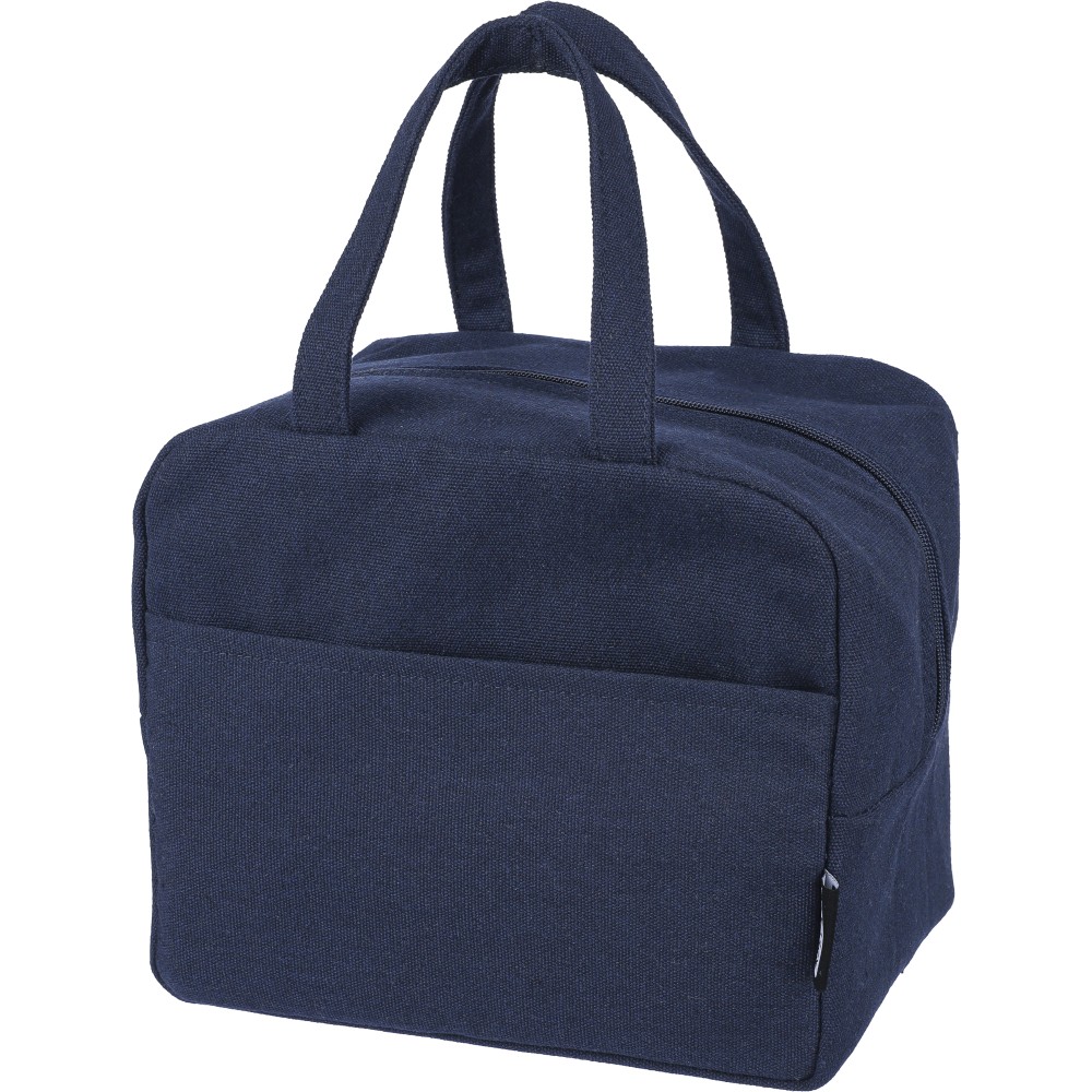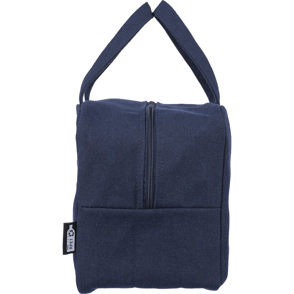 Hűtőtáska 330 g/m2 újahasznosított policotton anyagból, 210D poliészter béléssel és párnázott alumíniumfólia belsővel. 8 literes űrtartalommal, hordozópánttal, színben illeszkedő részletekkel és 5 kg teherbíró képességgel. Címkét tartalmaz. Emblémázás: Szitanyomás