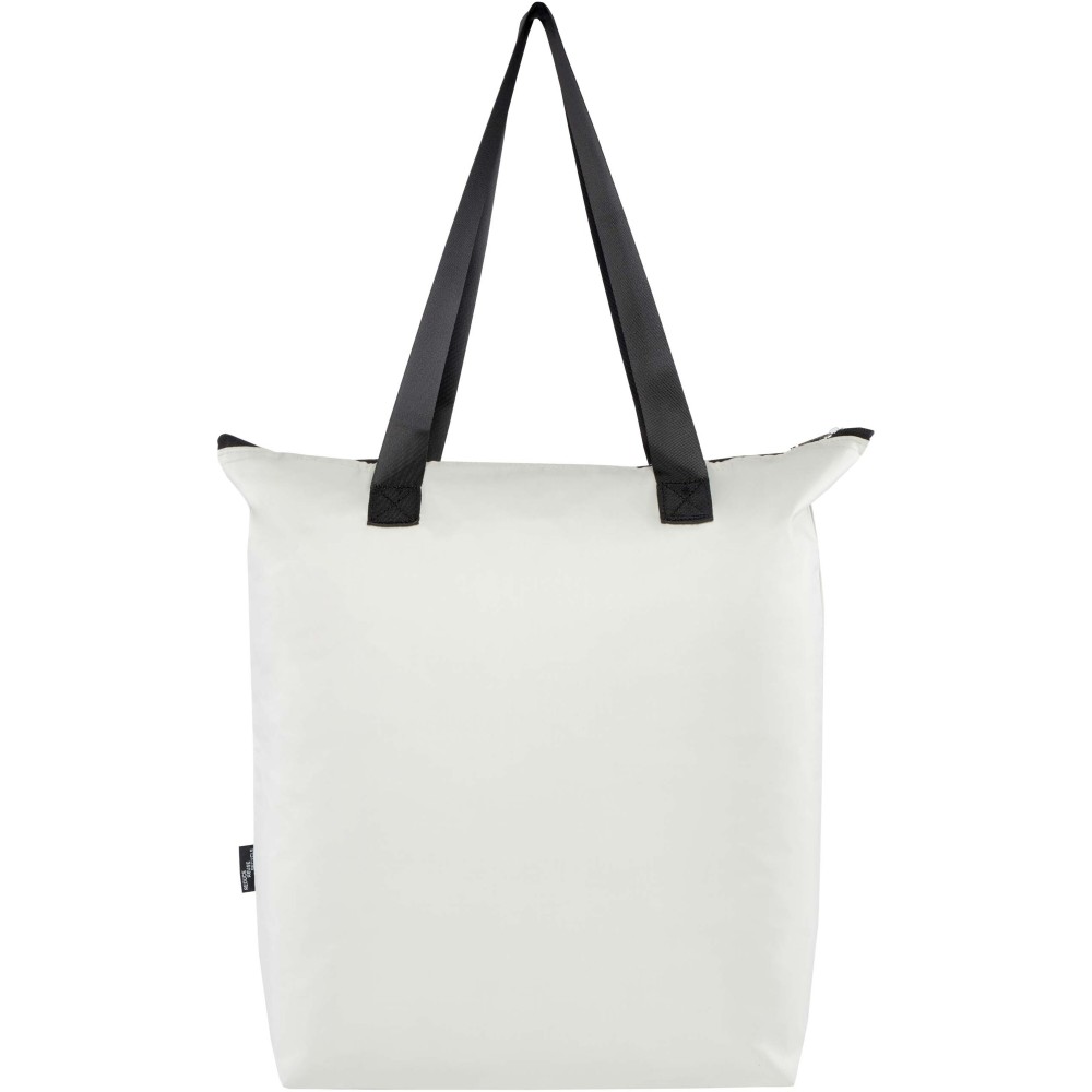 Ez a könnyű, mégis tartós hűtőtáska a kényelem és praktikusság jegyében készült, és könnyedén a kompakt tasakba hajtható, amelyen hurok található a kényelmes hordozás érdekében - tökéletes piknikhez, bevásárláshoz vagy szabadtéri programokhoz. Cipzáras, alumínium fóliával bélelt főrekesszel, nyitott elülső zsebbel és két hosszú, sima szövött anyagból készült fogantyúval rendelkezik. PVC-mentes újrahasznosított poliészterből készült. Űrtartalma: 15 liter. Emblémázás: Szitanyomás