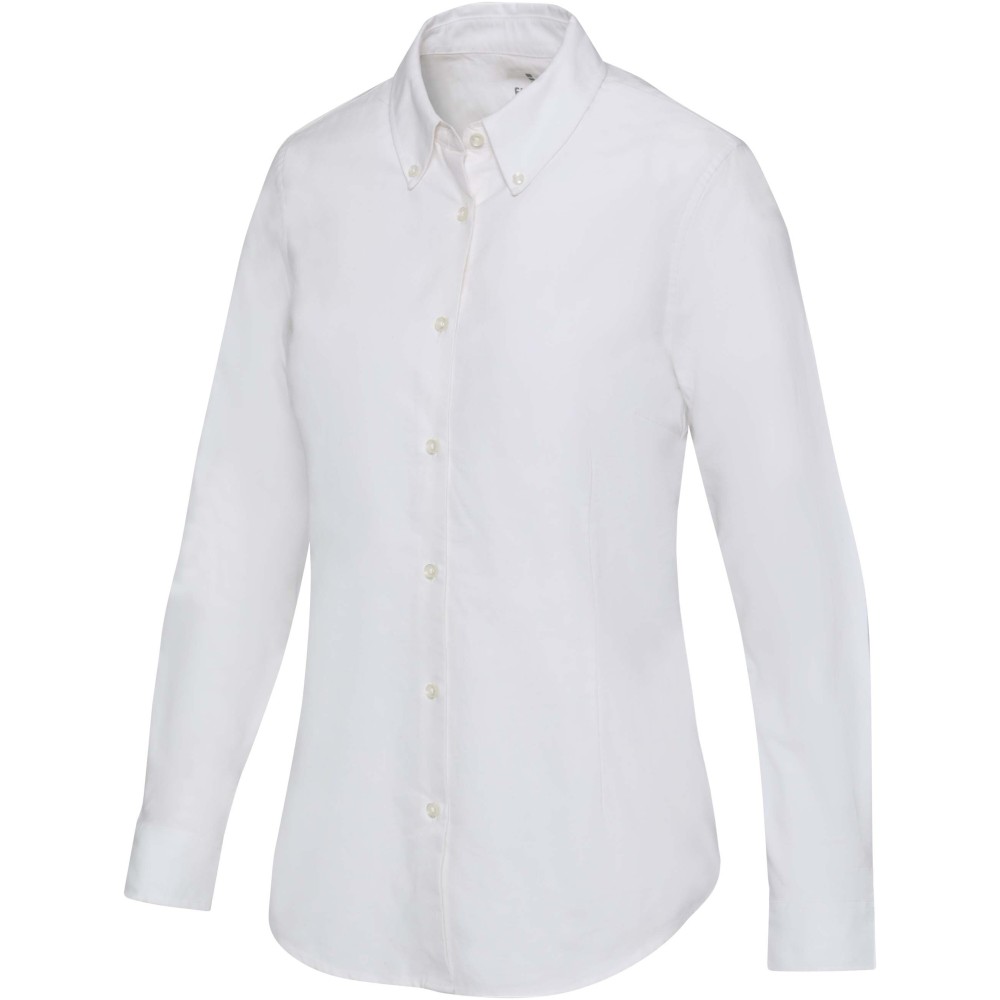 A Sphene hosszúujjú női oxford blúz időtálló dizájnt kínál, kifinomult nőiességgel. BCI-tanúsítvánnyal rendelkező pamutból készült, sima, kiváló minőségű tapintást biztosít, miközben támogatja a fenntarthatóbb pamuttermelést. A klasszikus oxford szövés finom textúrát és szerkezetet ad, kifinomult megjelenést teremtve, amely professzionális és alkalmi helyzetekben egyaránt jól működik. Normál fazonú, elöl és hátul formázó redőkkel, előnyös, kontúrozott sziluettet kínál. A gombos gallér teszi teljessé a dizájnt, így a Sphene egy sokoldalú alapdarab a ruhatárban. 100% BCI pamut oxford. Emblémázás: Hímzés