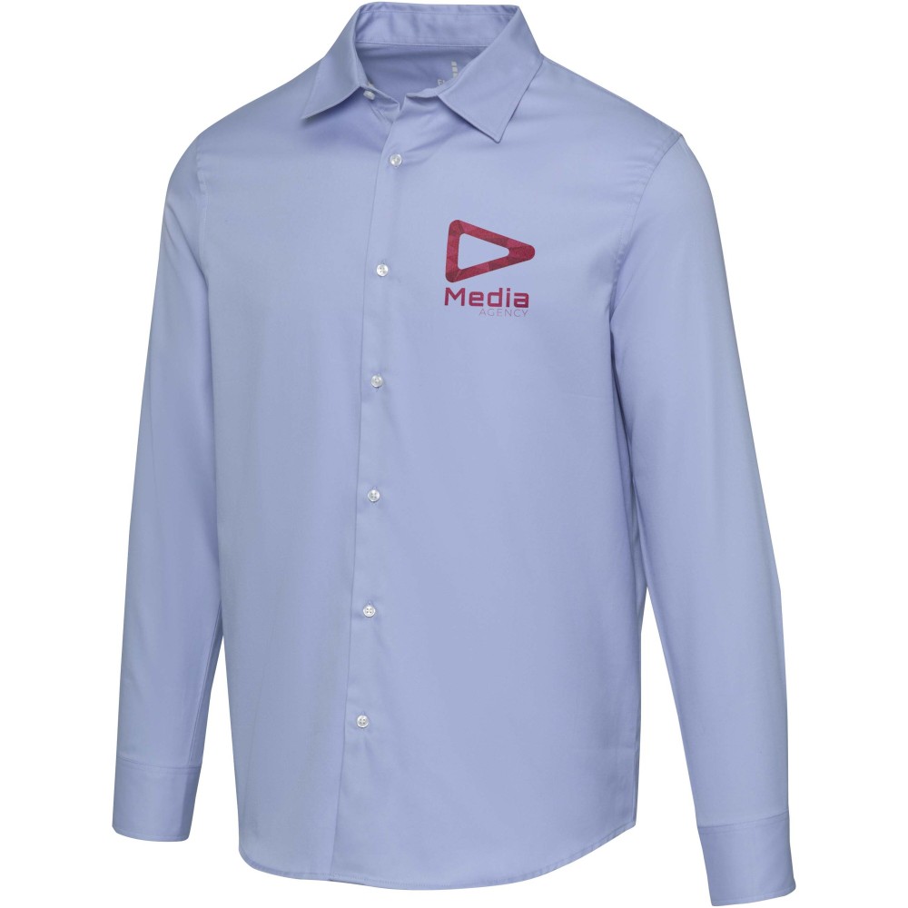 A Citrine hosszúujjú férfi twill ing könnyed stílust és mindennapi kifinomultságot kínál. Kiváló minőségű, BCI-tanúsítvánnyal rendelkező pamut twillből készült, támogatva a fenntarthatóbb pamuttermelést, miközben sima, enyhén fényes felületet biztosít, amely növeli a kényelmet és a tartósságot. A normál fazon nyugodt, mégis elegáns sziluettet kölcsönöz, a nyitott gallér pedig laza, modern hangulatot teremt. A Citrine professzionális és alkalmi viseletre egyaránt alkalmas, sokoldalú darab, amely tudatos kivitelezést ötvöz modern dizájnnal. 100% BCI pamutból készült twill szövet, 185 g/m2. Emblémázás: Hímzés