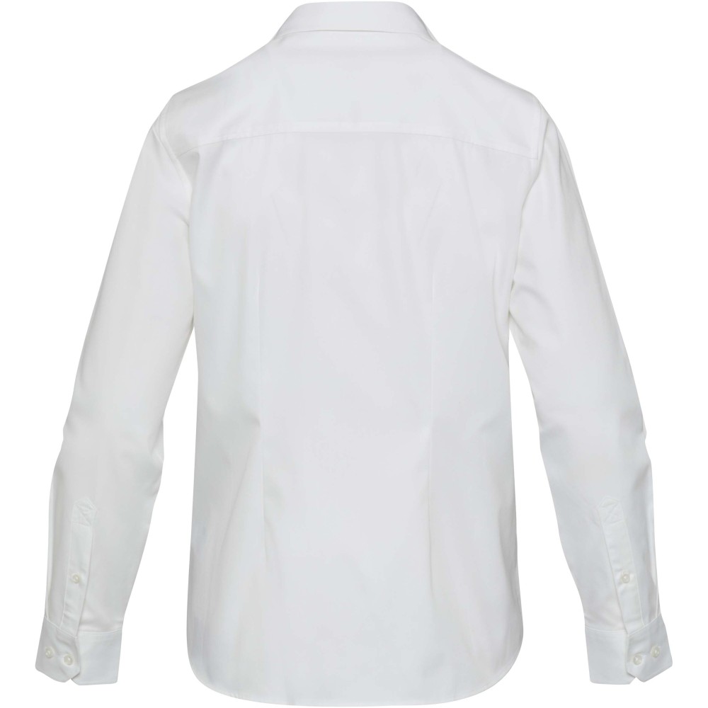 A Citrine hosszúujjú női twill blúz puha szerkezetét nőies könnyedség jellemzi. Prémium minőségű, BCI-tanúsítvánnyal rendelkező pamut twillből készült, sima, finoman fényes textúrája növeli a mindennapi viselhetőségét, miközben támogatja a fenntarthatóbb pamuttermelést. A normál fazon, elöl és hátul dartsokkal formázva, kényelmes viselet mellett előnyös sziluettet kölcsönöz. Nyitott gallérral, modern csavarral tervezett Citrine könnyedén átmenetet biztosít a munkanapok és a hétvégék között, időtálló minőséget hozva minden ruhatárba. 100% BCI pamutból szőtt twill, 185 g/m2. Emblémázás: Hímzés