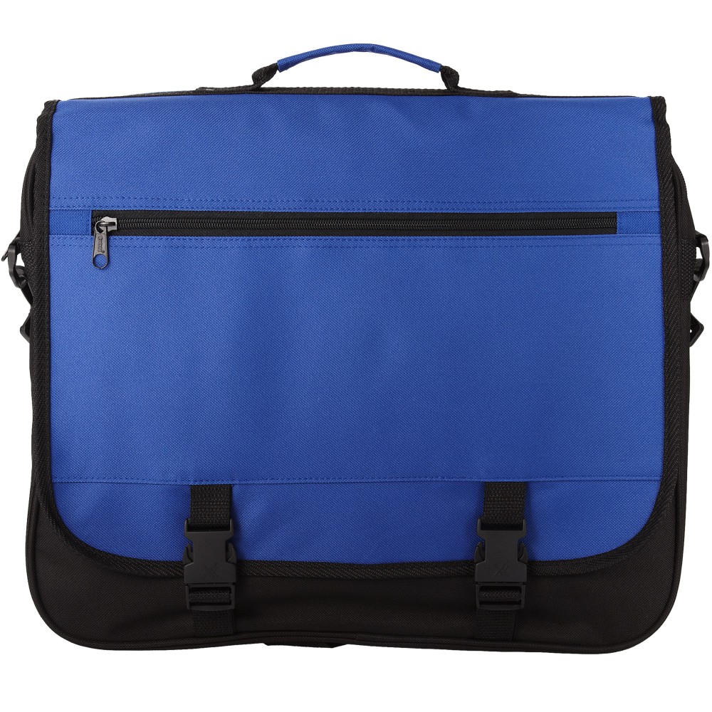 Csattal zárható hajtókás táska állítható vállpánttal, a hajtókában cipzáros zseb, cipzáros fő tároló rekesz, több nyitott zseb a hajtóka alatt. Emblémázás: Szitanyomás