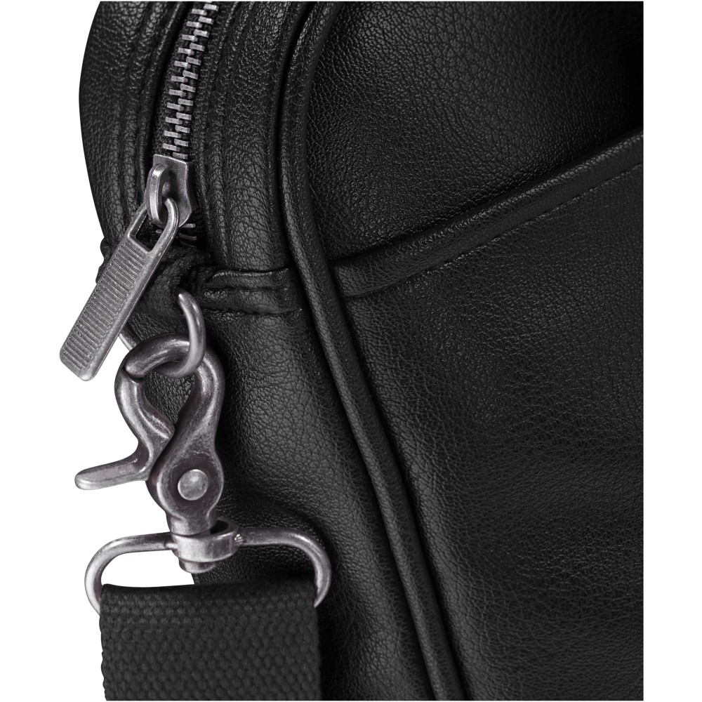 Oxford bőröndre húzható laptoptáska cipzáras főrekesszel, amely illeszkedik a legtöbb 15.6 laptophoz. Belső rendező panel tabletek és egyéb eszközök tárolására. Könnyen hozzáférhető elülső tépőzáras rekesz, leszerelhető, állítható vállpánt, hordozófülek és hátsó kengyel, amelynek segítségével ráilleszthető a legtöbb bőröndszállító kocsi fogantyújára. Antik bronz fémrészek. Műbőr. Emblémázás: Szitanyomás
