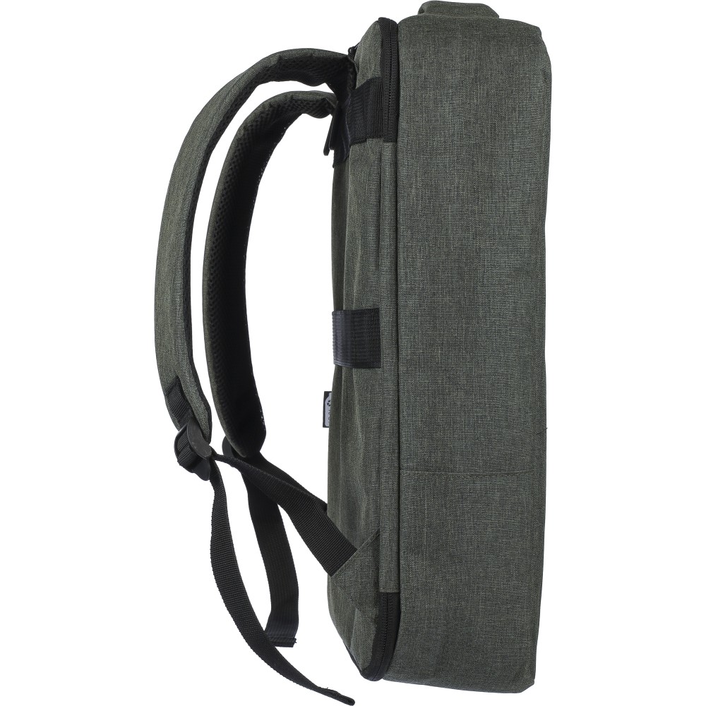 Laptophátizsák 300D rPET poliészter anyagból, 210D rPET béléssel. Egy nagy cipzáras rekesszel, számtalan belső zsebbel, tépőzáras laptoptartó zsebbel 15"-es laptop számára és 12 literes űrtartalommal. Megerősített, szellőző hátrésszel, állítható vállpánttal, oldalsó hordozófüllel és gurulóstáskára való felhelyezésre alkalmas pánttal. Teherbíró képesség: 10 kg. Emblémázás: Szitanyomás