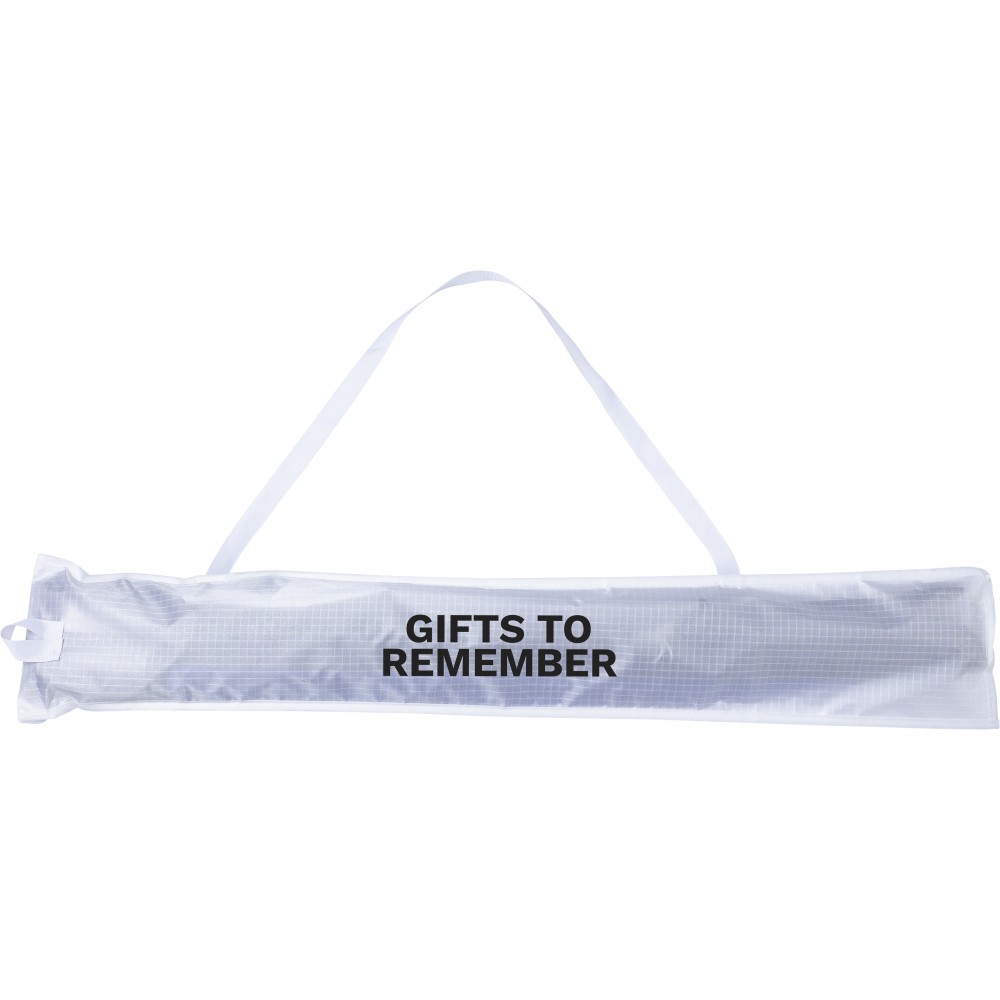 210T ripstop poliészter sárkány. Szélessége 160 cm. Két műanyag fogantyút tartalmaz. Vállpánttal rendelkező hordtáskába csomagolva. Emblémázás: Szitanyomás