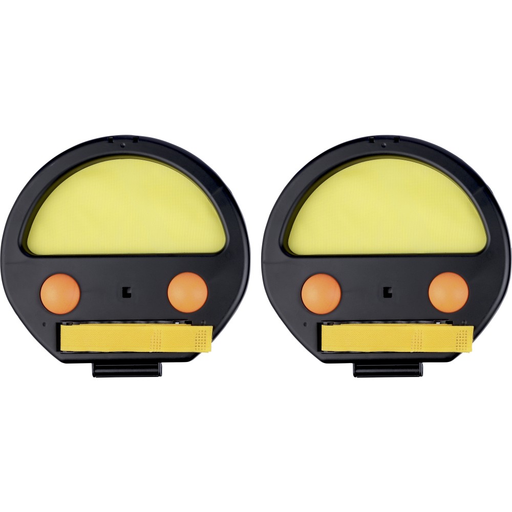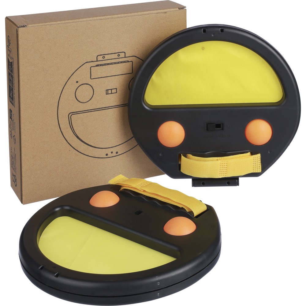 Labdajáték készlet két fogóval és négy labdával. A játék fogórészén zárral és tépőzárral, mely a kézhez való rögzítést segíti. Csomagolása barna papírdoboz. ABS. Emblémázás: Tamponnyomás