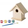 Fa madárodú festőkészlettel, 4 színű festékkel és ecsettel. Fa. Emblémázás: Gravírozás, Tamponnyomás