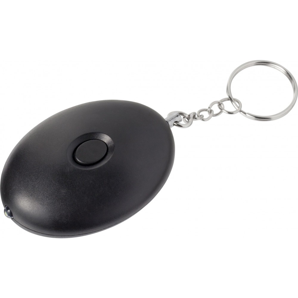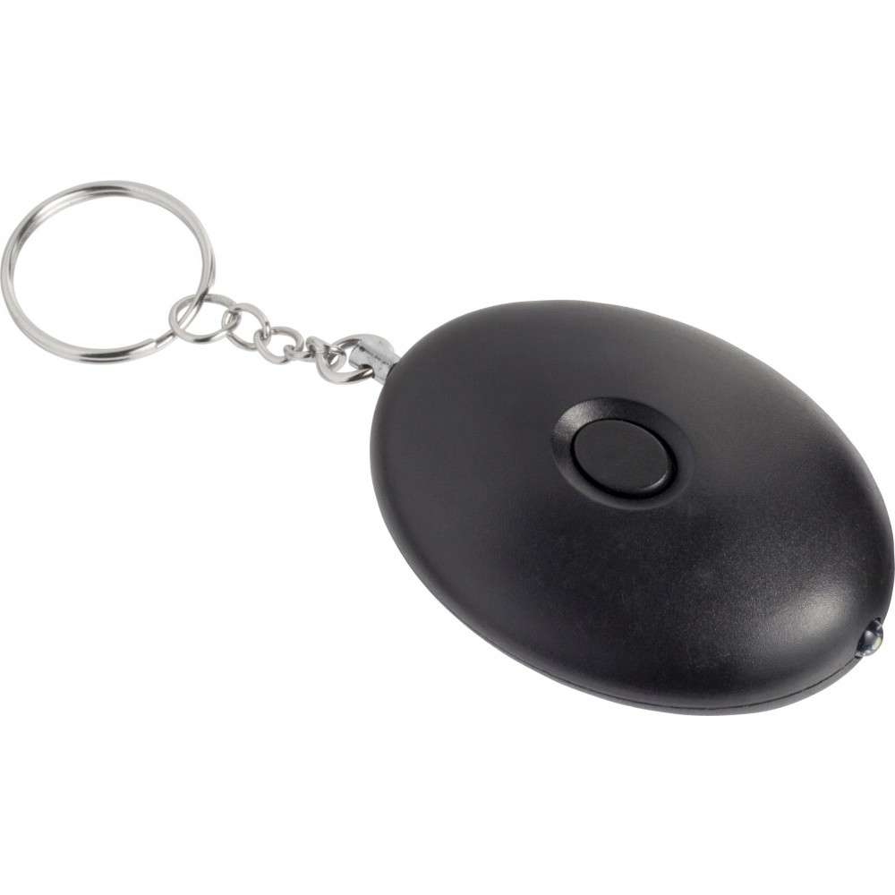 Riasztó kulcstartóval. A LED-lámpa és a riasztó hangja gombbal indítható el. Az elemet tartalmazza. 102 dB-lel szól. ABS műanyag. Emblémázás: Tamponnyomás