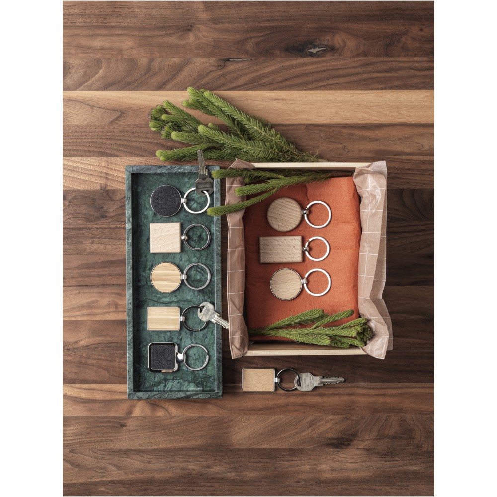 Moreno kerek bükkfa kulcstartó, natúr