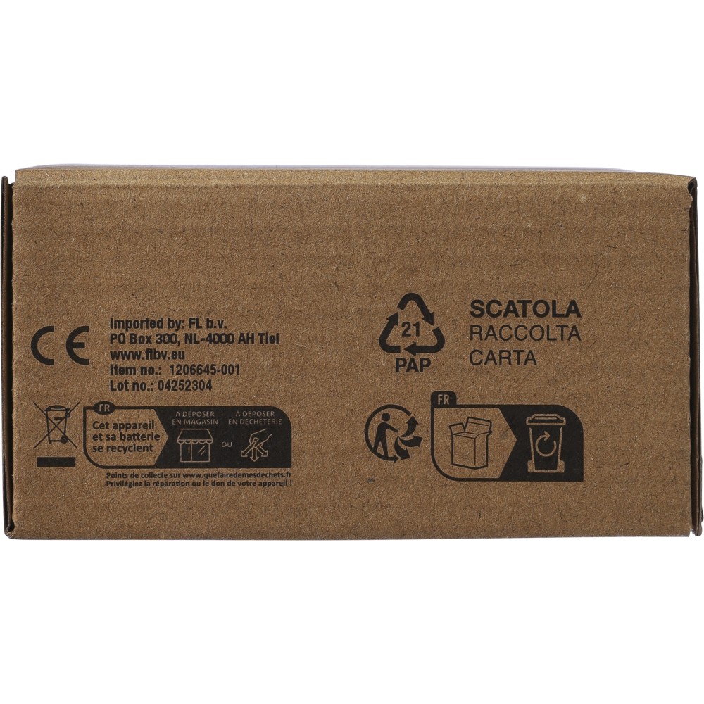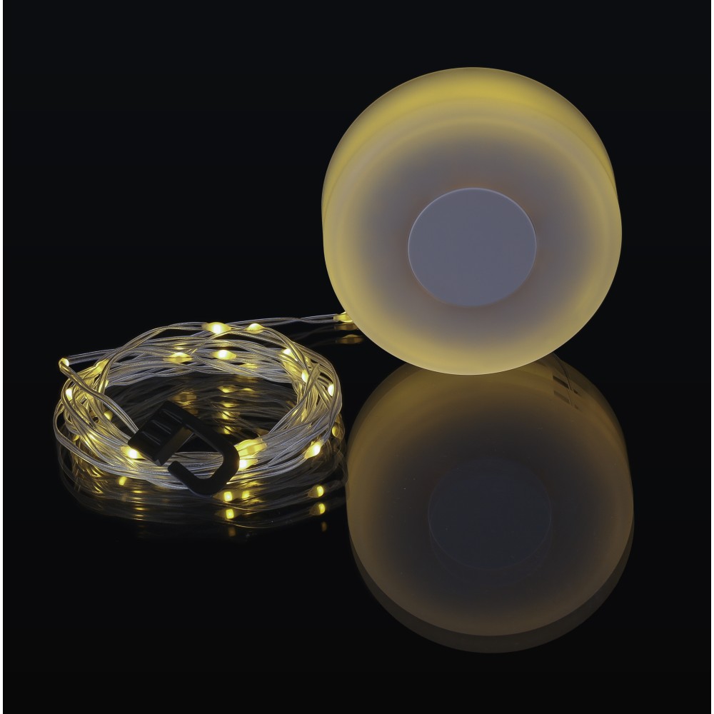 Tölthető kempinglámpa kétféle világítási móddal. 8 m hosszú fényfüzérrel, mely visszatekercselhető a lámpa belsejébe. 1000 mAh-s akkumulátorral, C-típusú csatlakozóval. Csomagolása barna papírdoboz. Emblémázás: Matricázás