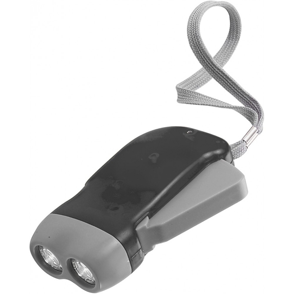 Dinamós zseblámpa, a szürke kar pumpálásával tölthető. Szabadalom: EU Nr. 363627-0002 Emblémázás: Tamponnyomás