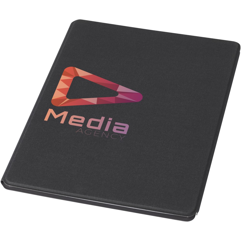 Az RCS tanúsítvánnyal rendelkező Kunveno portfólió részben újrahasznosított poliészterből készül, így ez a portfólió fenntarthatóbb választás, mivel segít csökkenteni a szűz nyersanyag felhasználását. Mágneses záródással és 20 fehér, vonalas, fenntartható forrásból származó 80 g/m2 újrahasznosított ívvel. Emblémázás: Gravírozás, Tamponnyomás