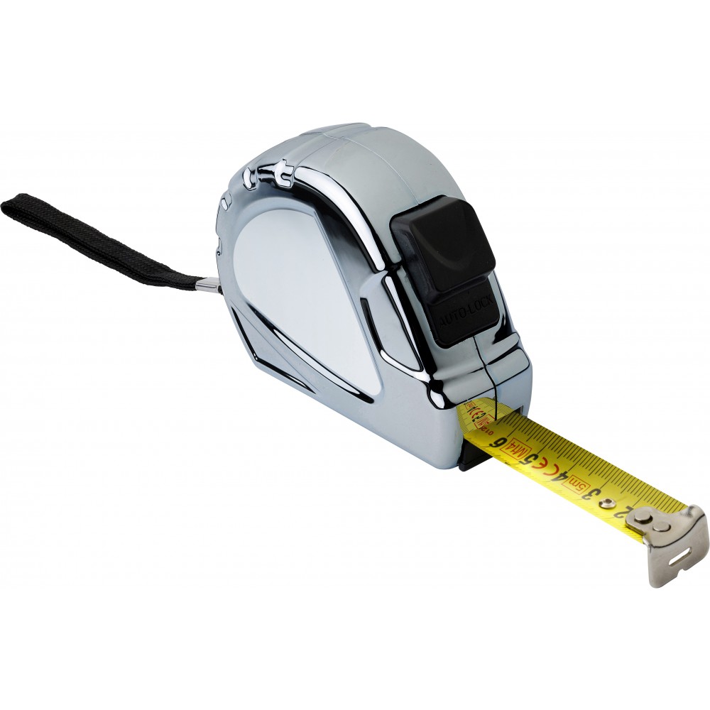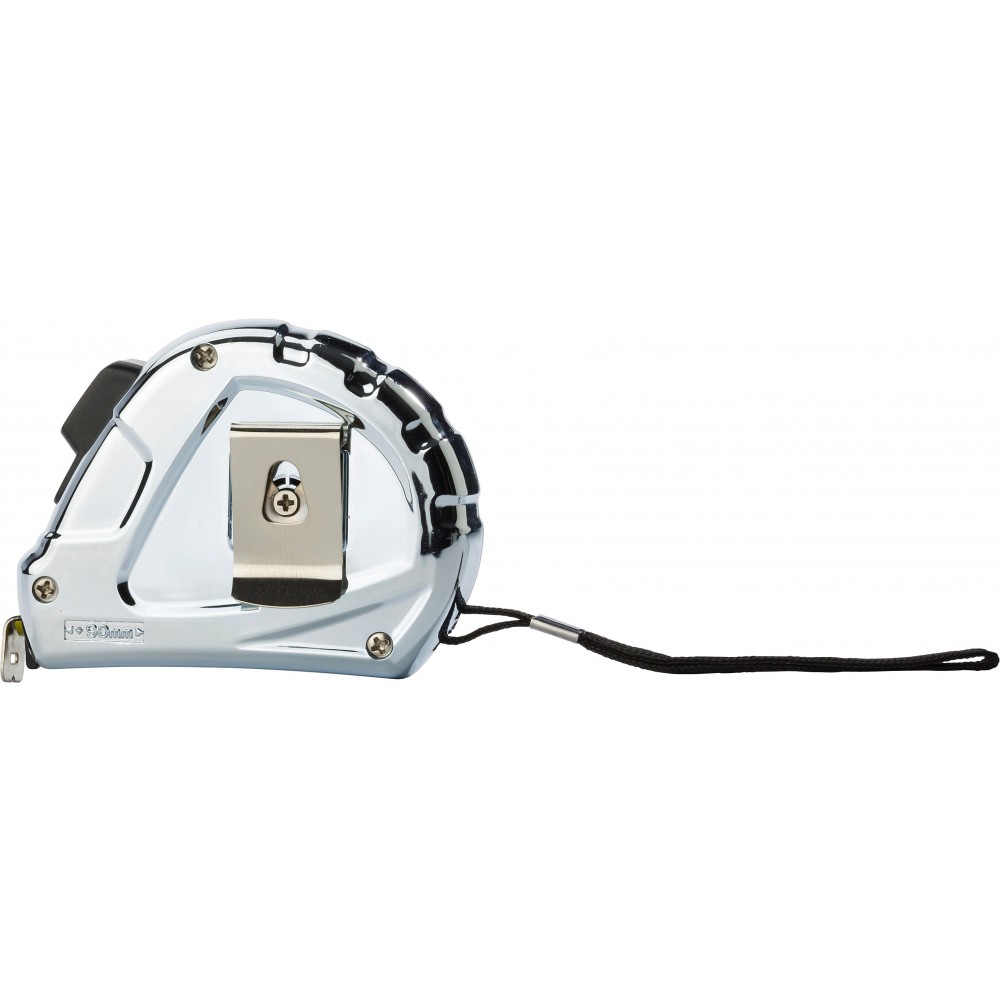 5 méteres mérőszalag centiméter beosztással, fényes házzal, övcsattal, csuklópánttal. Emblémázás: Matricázás, Tamponnyomás