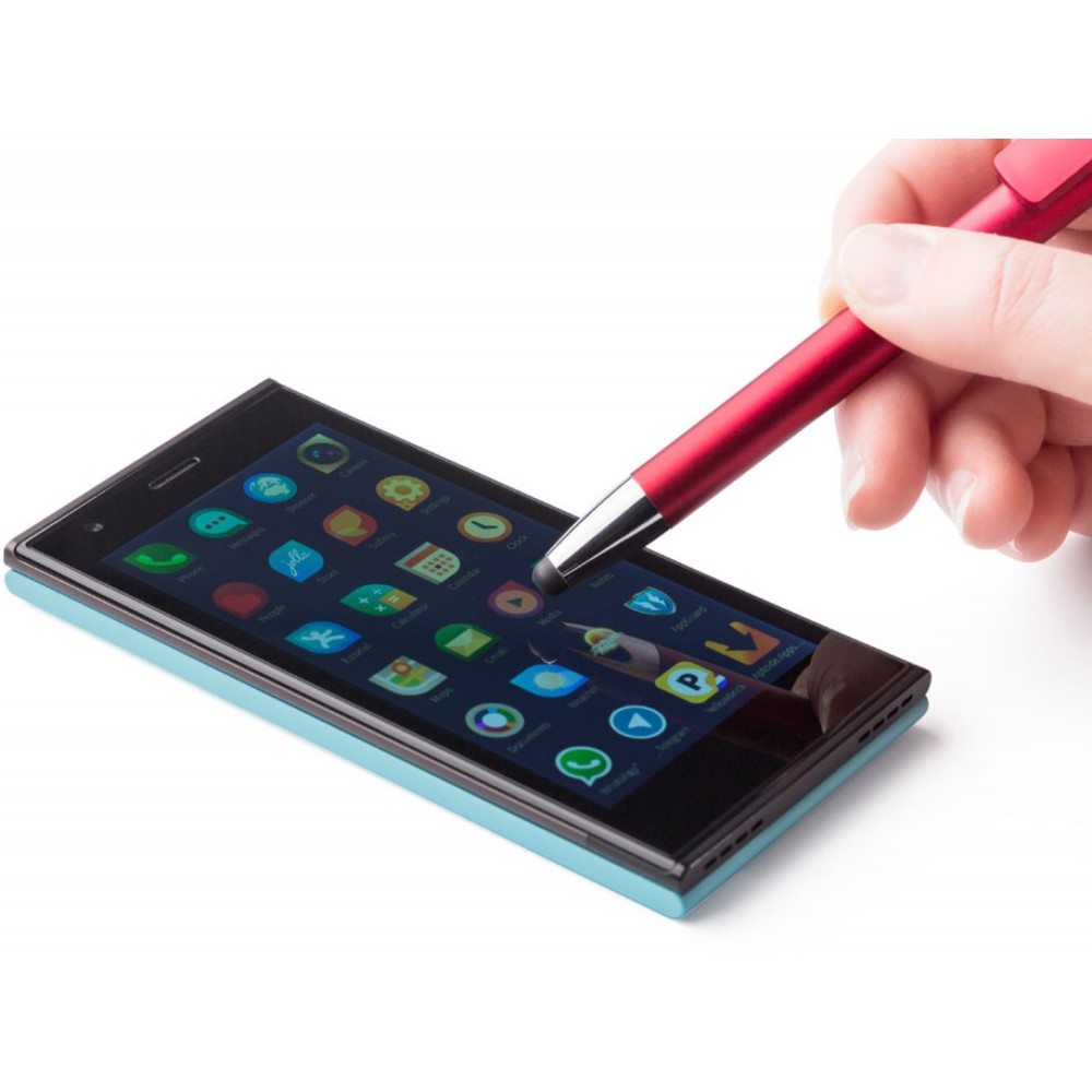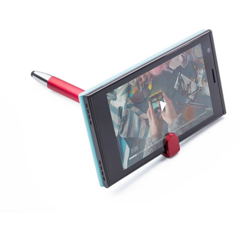 Golyóstoll telefontartóval, kék tollbetéttel, piros