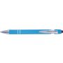 Golyóstoll kék tollbetéttel, gumis felülettel és érintővel kapacitív képernyőkhöz. Kék tollbetéttel. A hegy és a klipsz ezüst színű műanyag. ABS, alumínium. Emblémázás: Gravírozás, UV nyomtatás