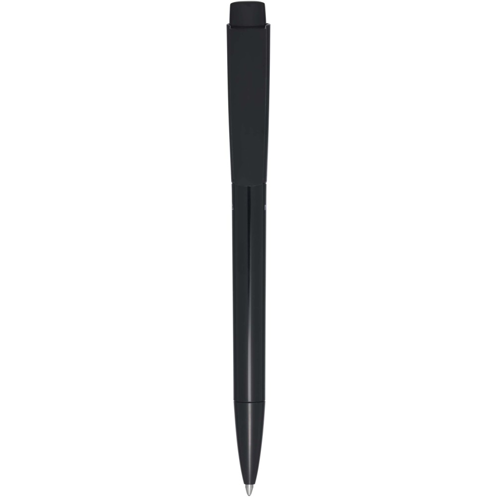 Golyóstoll, amelynek teste és klipsze újrahasznosított műanyagból, hegye pedig rozsdamentes acélból készült. Fekete tollbetéttel. Íráshossz: 3000 méter. Hegyméret: 1,00 mm. Németországban készült. Emblémázás: Tamponnyomás, UV nyomtatás