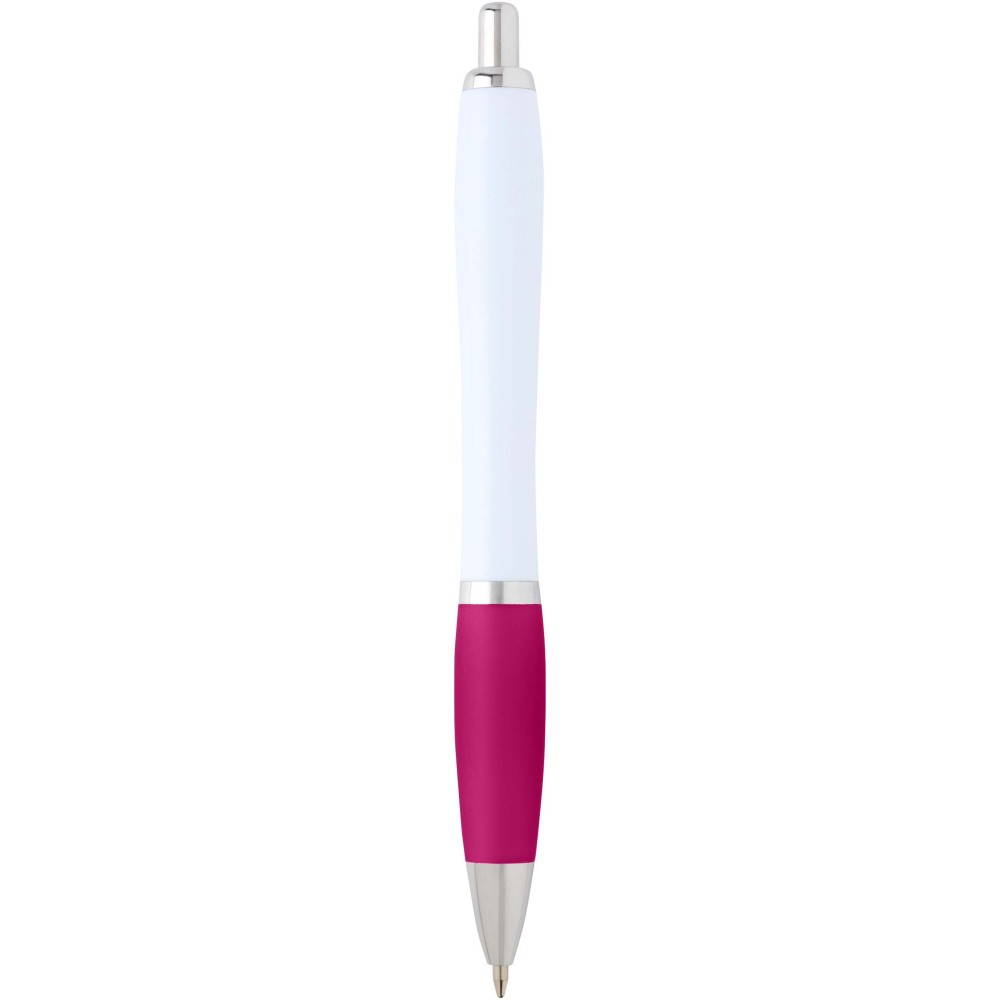 A Nash golyóstoll stílusos, ívelt kialakítással és puha markolattal rendelkezik, ezen felül újrahasznosított műanyagból készült. Az anyag kemény és tartós, így hosszú élettartamot biztosít. Tinta színe: fekete. Íráshossz: 1000 méter. Tollhegy mérete: 1,00 mm. Emblémázás: Tamponnyomás, UV nyomtatás