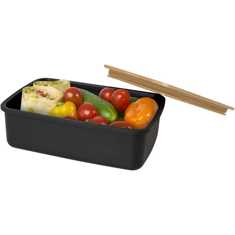 A Mangi ételtartó doboz újrahasznosított műanyagból készült. Bambusz fedéllel és rugalmas pánttal van ellátva, amely biztosítja, hogy a fedél a helyén maradjon, így az étel frissen tartása garantált. Űrtartalom: 750 ml. Emblémázás: Gravírozás, Tamponnyomás