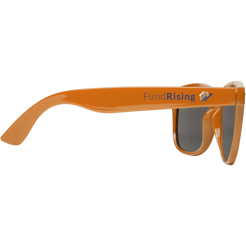Ez a fenntartható, retro napszemüveg ideális promóciós ajándék nyári fesztiválokon, rendezvényeken vagy más napsütéses szabadtéri tevékenységek során. Az újrahasznosított PET műanyagnak köszönhetően a napszemüveg könnyű és kényelmes viselet. Ez a szemüveg megfelel az EN ISO 12312-1 szabványnak, UV400-as lencsékkel rendelkezik, amelyek 3. kategóriájúak, így tökéletes választás az erős napfény elleni védelemhez. Emblémázás: Tamponnyomás