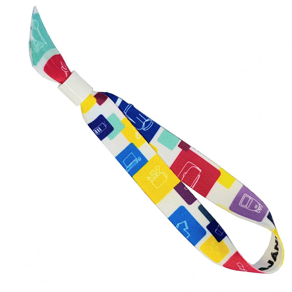 Teljes felületen szublimációs eljárással nyomható karpánt konferenciára, fesztiválra. Nem csak a biztonságos beléptetést szolgálja, hanem emlékként is elrakják az emberek. Csak dekorálva rendelhető. 15 mm széles, 35 cm hosszú szalag. A zárógyűrű külön csomagolva is kérhető vagy a szalag elejére felhúzva, előkészítve. Emblémázás: Szublimálás