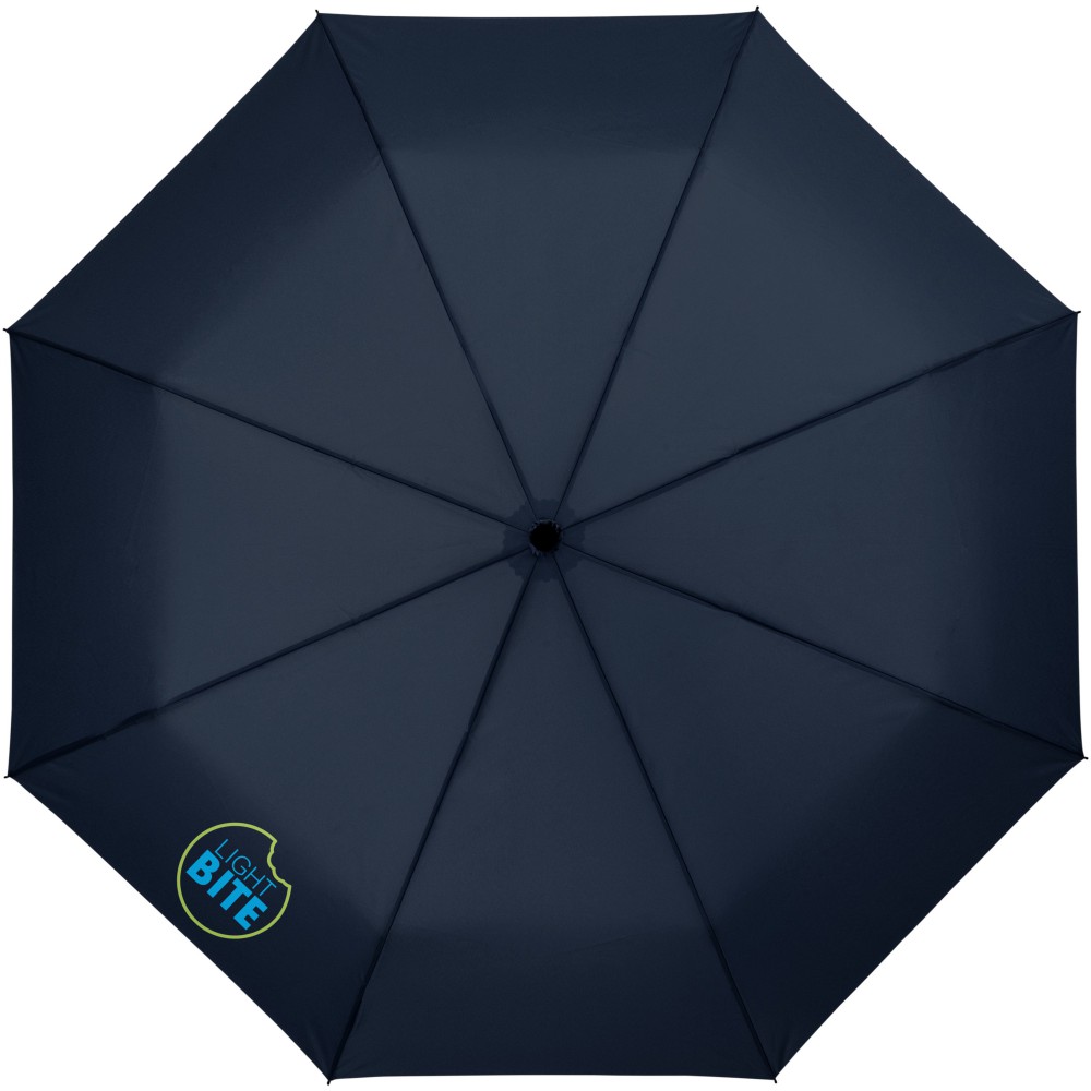 Wali 21 -es, 3 szekciós, összecsukható esernyő. Szivacsos poliészter vászon, fém nyél, üvegszálas váz és gumi bevonatú műanyag nyél. Az esernyőhöz a tok tartozék. Emblémázás: Szitanyomás